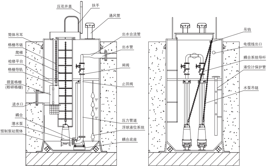 2、流动性好,无阻塞,自洁功能,这是由于污水泵站科技的整合,泵坑采用流体设计。