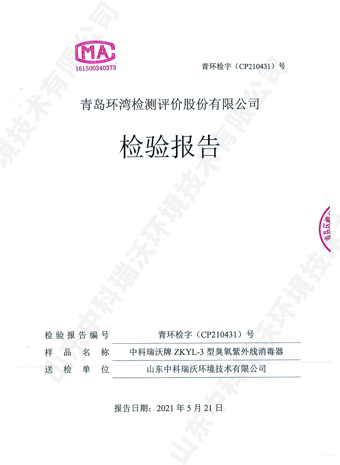 医疗污水处理设备检测报告~臭氧+紫外线消毒