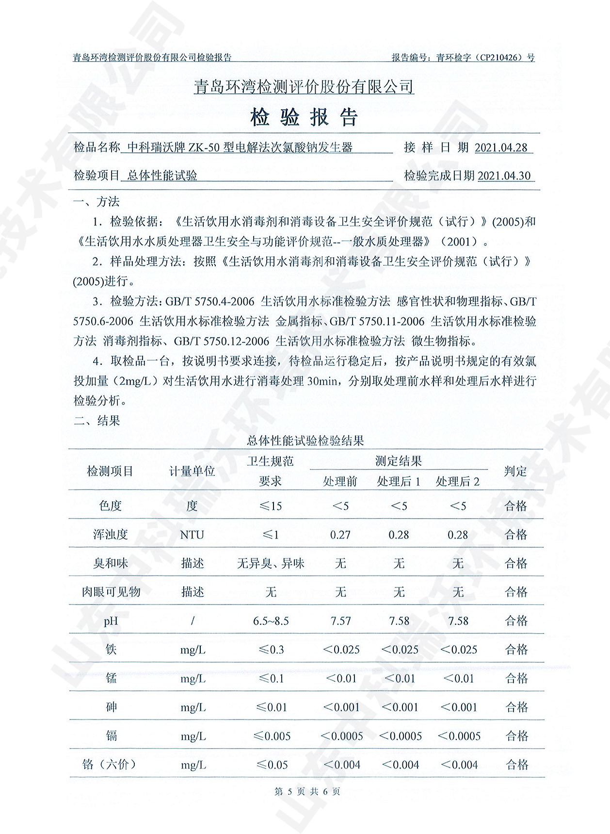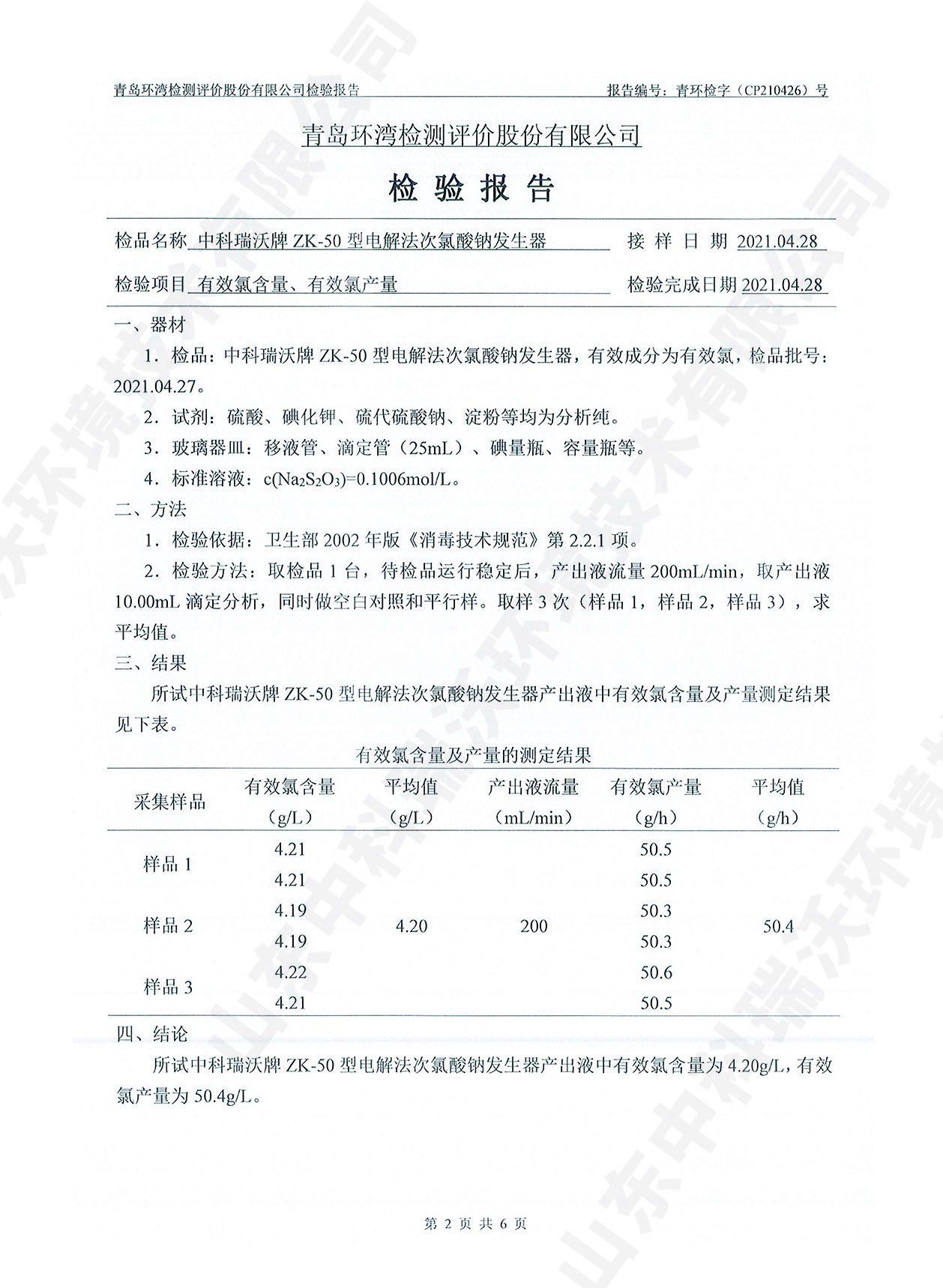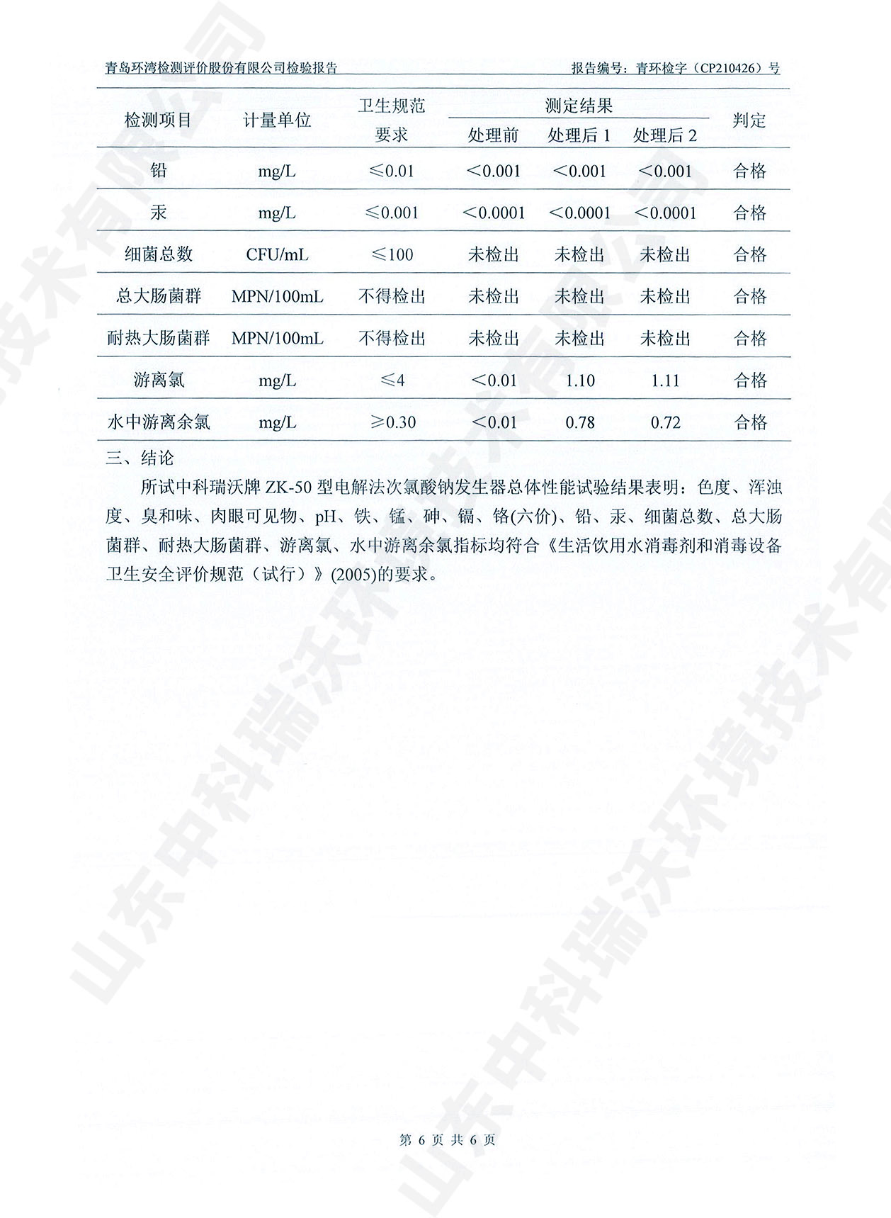 饮水消毒设备检测报告~次氯酸钠消毒